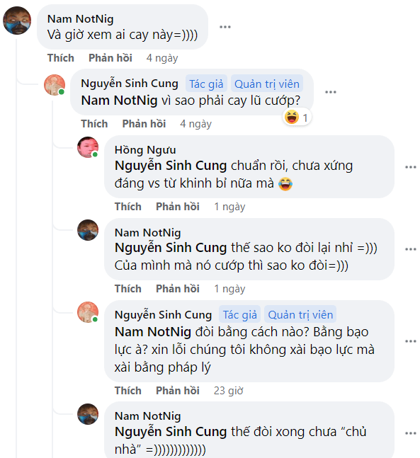 P/s: Tag hết để cho tụi nằm vùng có đọc thì cũng tự thấy là tụi nó đê tiện ra sao. Không bao giờ thắng được người dân Nam Kỳ bằng cách so tài/quang minh chánh đại… mà luôn nằm dưới đáy quần của người Nam Kỳ, thậm chí là dưới đáy quần của những đàn bà hay những ông Sư. Rất nhục!”